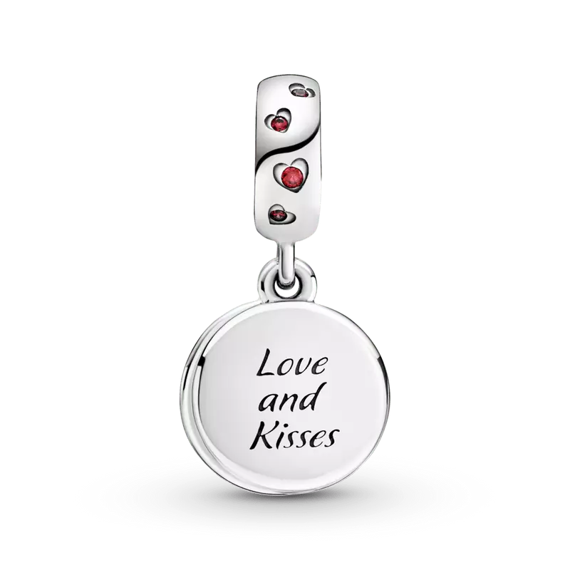 Marque o amor verdadeiro com o Disney Mickey Mouse & Minnie Mouse Love and Kisses Dangle Charm. Feito à mão em prata de lei, a moldura frontal aberta inclui a silhueta de Minnie Mouse. O disco traseiro apresenta detalhes do Mickey Mouse e esmalte transparente vermelho e magenta aplicado à mão com corações de prata brilhando através dele. Incluindo a gravura “Love and Kisses”, pedras vermelhas em forma de coração decoram a fiança. O presente ideal para simbolizar o seu romance, os personagens se beijam quando os pendentes são colocados juntos.