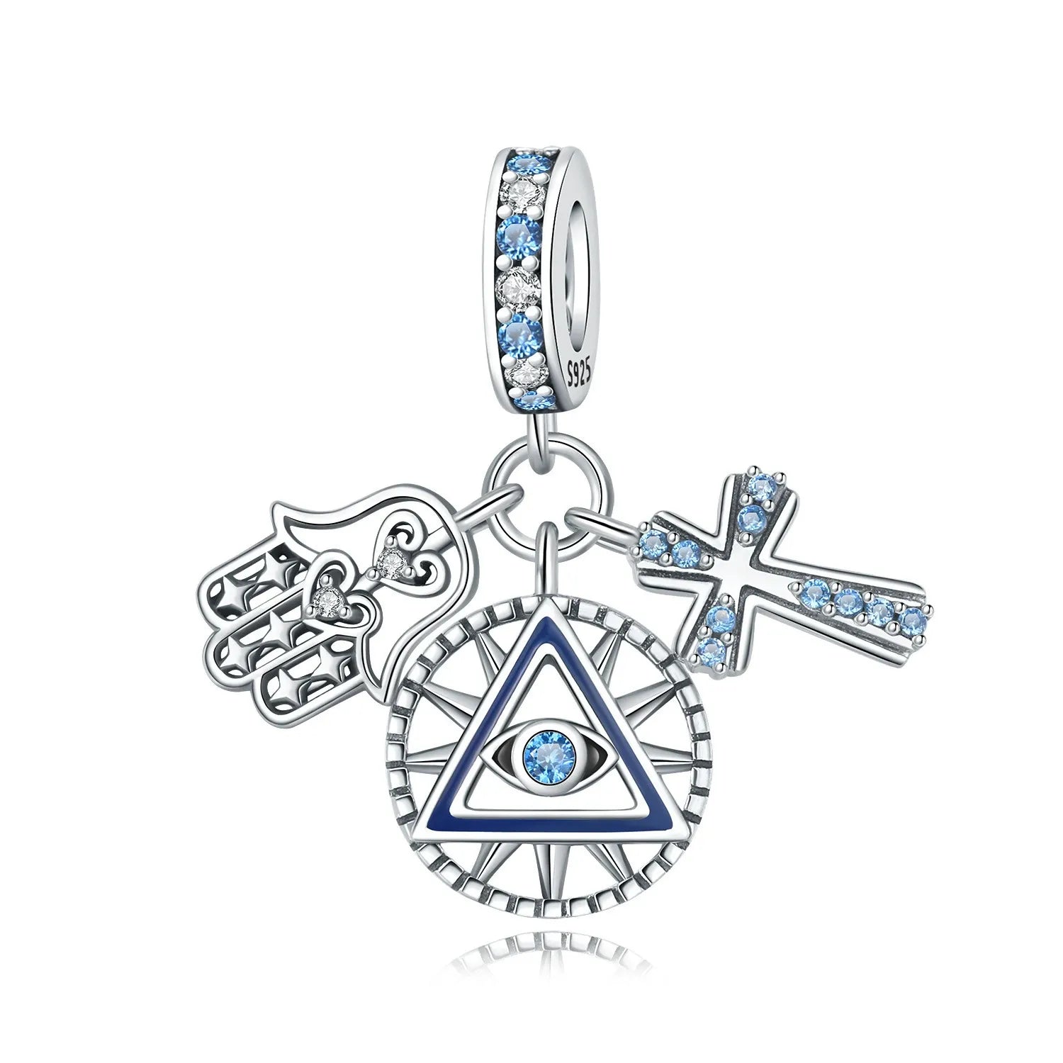 Berloque Pendente Cruz com a Mão de Fátima e o Mau Olhado