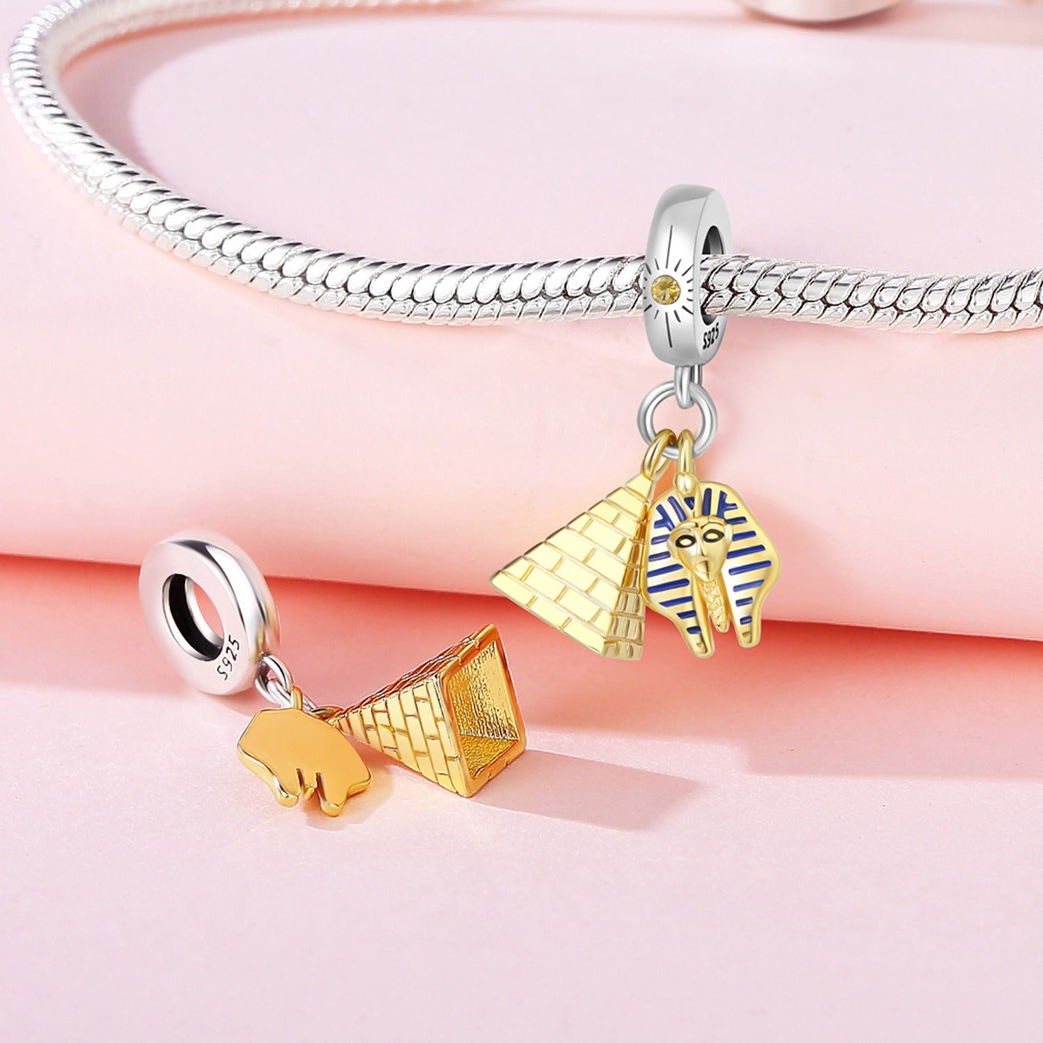 Berloque Pendente Esfinge e Pirâmide Dourado