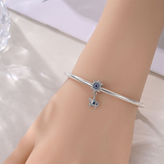 Feito em Prata 925 autêntica, este berloque pendente é um amuleto que traz consigo a força e a tranquilidade do mar. O leme, com sua gema azul e detalhes em esmalte, simboliza a capacidade de guiar seu próprio destino, enquanto a tartaruga, com seu casco de pedras brilhantes, representa a sabedoria e a proteção. Juntos, eles formam a combinação perfeita para quem busca um lembrete para seguir em frente com paciência e determinação.
