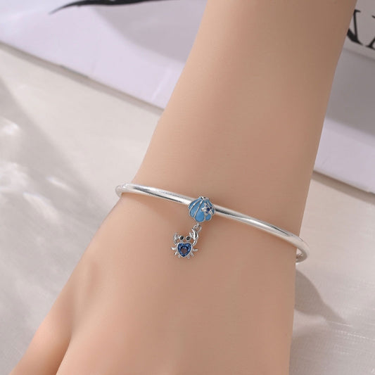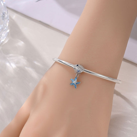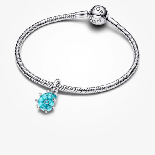 Feito em Prata 925 autêntica, este berloque pendente é um convite para o mundo subaquático. Ele traz um berloque em forma de concha, adornado com pedras azuis e uma estrela do mar brilhante. Pendurada na concha, uma estrela do mar em esmalte azul vibrante e cravejada com pedras, adicionando um toque de cor e glamour.