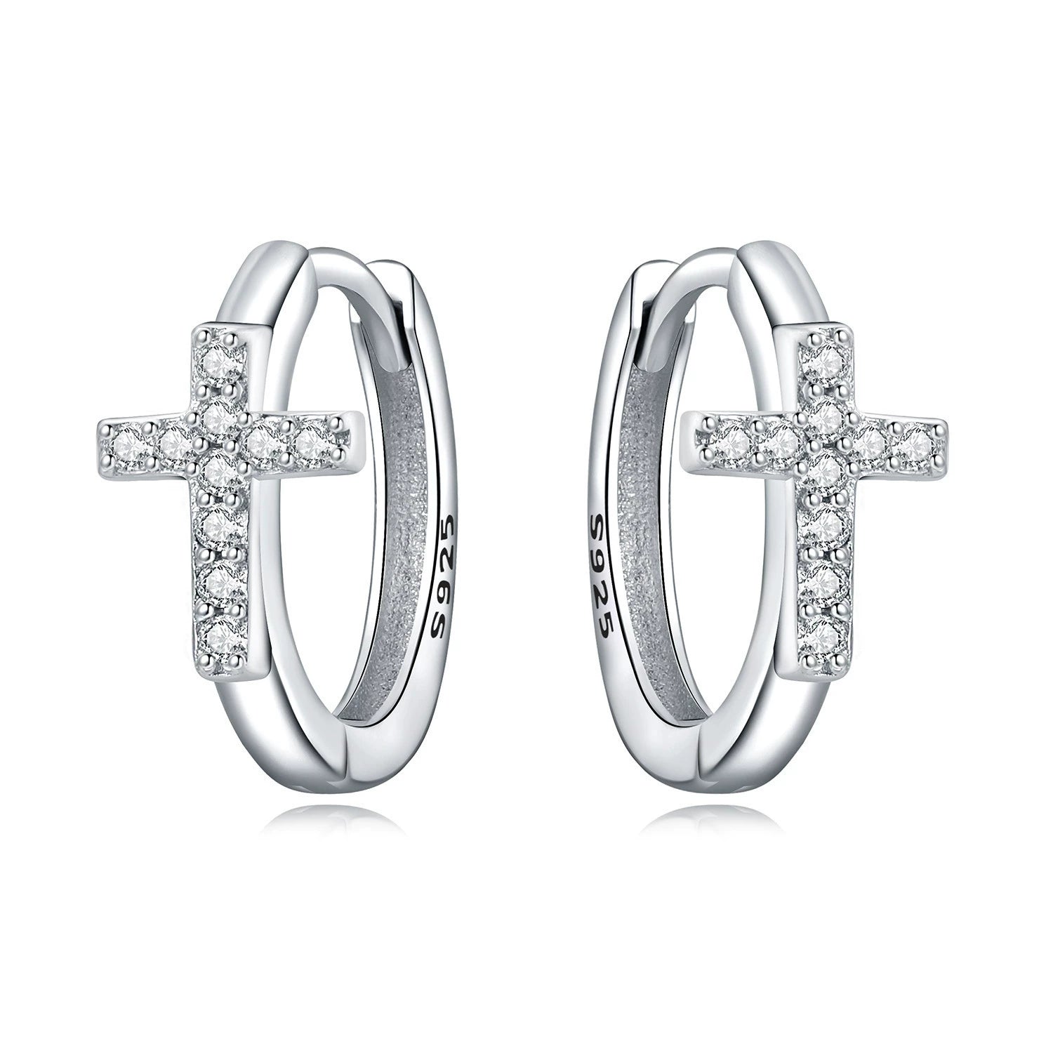 Confeccionado em Prata Esterlina 925, o brinco é hipoalergênico e garante brilho e durabilidade. O destaque fica por conta das zircônias negras que cravejadas na cruz, criando um contraste elegante e um brilho que captura a luz. O formato de argola proporciona um caimento elegante e moderno, perfeito para uso diário ou para um look mais especial.