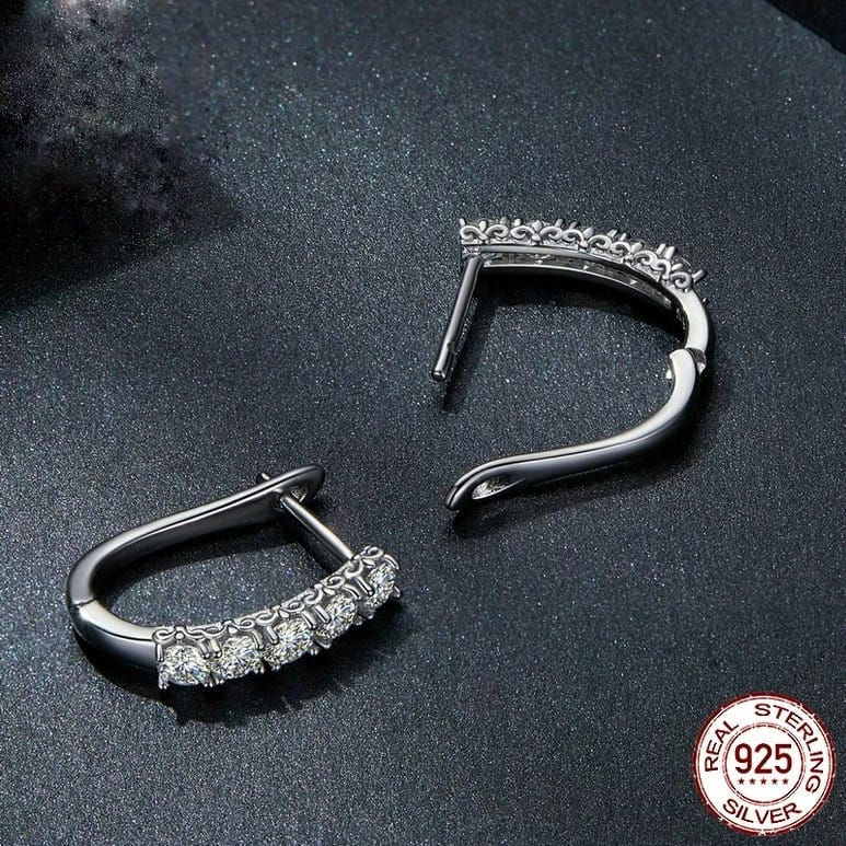 Feitos em Prata 925 autêntica, estes brincos de meia argola têm um design atemporal e são cravejados com uma fileira de zircônias de alta qualidade. Cada pedra foi cuidadosamente lapidada para capturar e refletir a luz de forma sutil e deslumbrante, dando um toque especial a qualquer look.