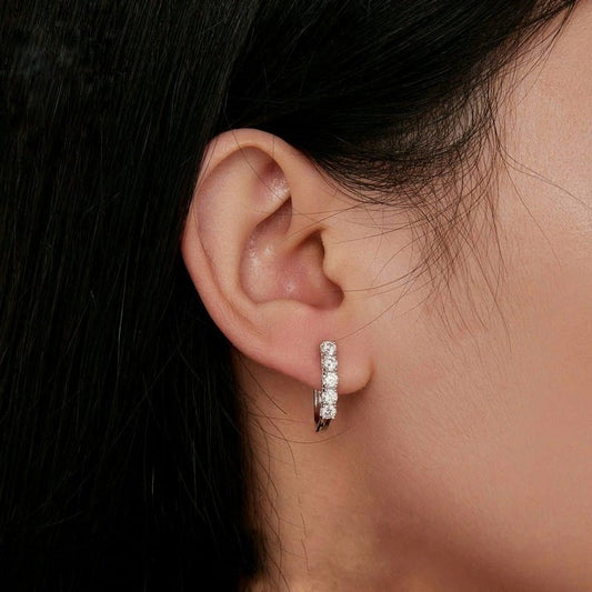 Feitos em Prata 925 autêntica, estes brincos de meia argola têm um design atemporal e são cravejados com uma fileira de zircônias de alta qualidade. Cada pedra foi cuidadosamente lapidada para capturar e refletir a luz de forma sutil e deslumbrante, dando um toque especial a qualquer look.