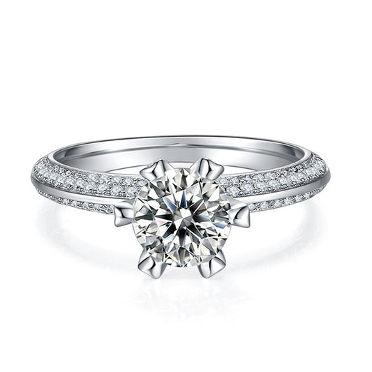 O Anel Eternité é confeccionado em prata esterlina 925 e traz como protagonista um diamante de moissanite de 6,5mm, lapidado com perfeição para refletir brilho intenso e eterno. O aro é delicadamente cravejado por microzircônias, elevando ainda mais a elegância da peça.✔ Prata esterlina 925 (nobre, durável e antialérgica)