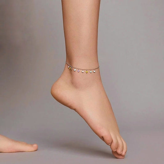 Apresentamos a Tornozeleira Coração Colorido, uma peça delicada e vibrante que celebra a alegria e a diversidade dos sentimentos. Cada coração esmaltado em tons suaves de azul, amarelo, rosa e lilás, é um lembrete de que a vida é mais bonita quando é colorida.