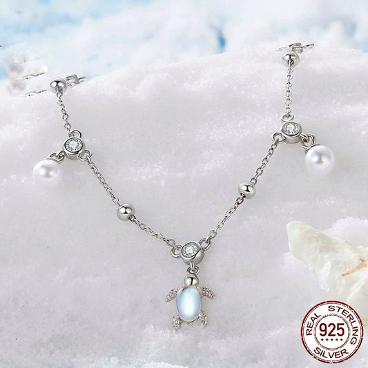 Apresentamos a Tornozeleira Encanto Oceânico, uma joia que celebra a beleza e os mistérios do fundo do mar. Delicadamente trabalhada em prata 925 legítima, esta peça única é adornada com uma charmosa tartaruga-marinha, pérolas reluzentes e pequenas estrelas, todas remetendo aos tesouros do oceano.