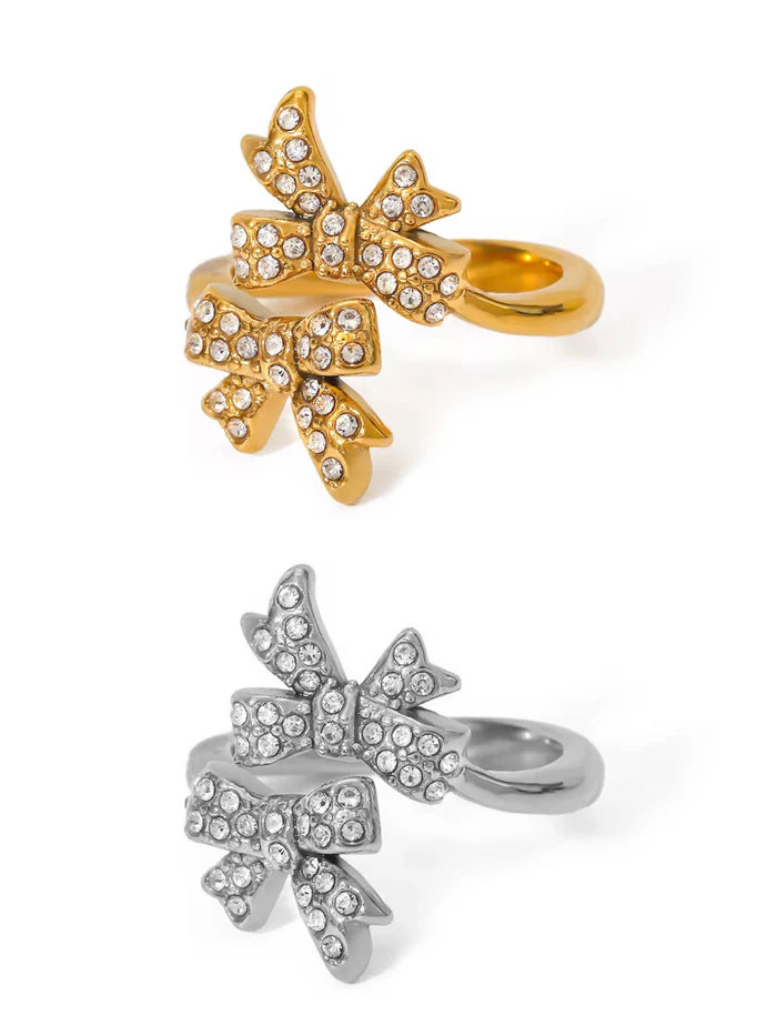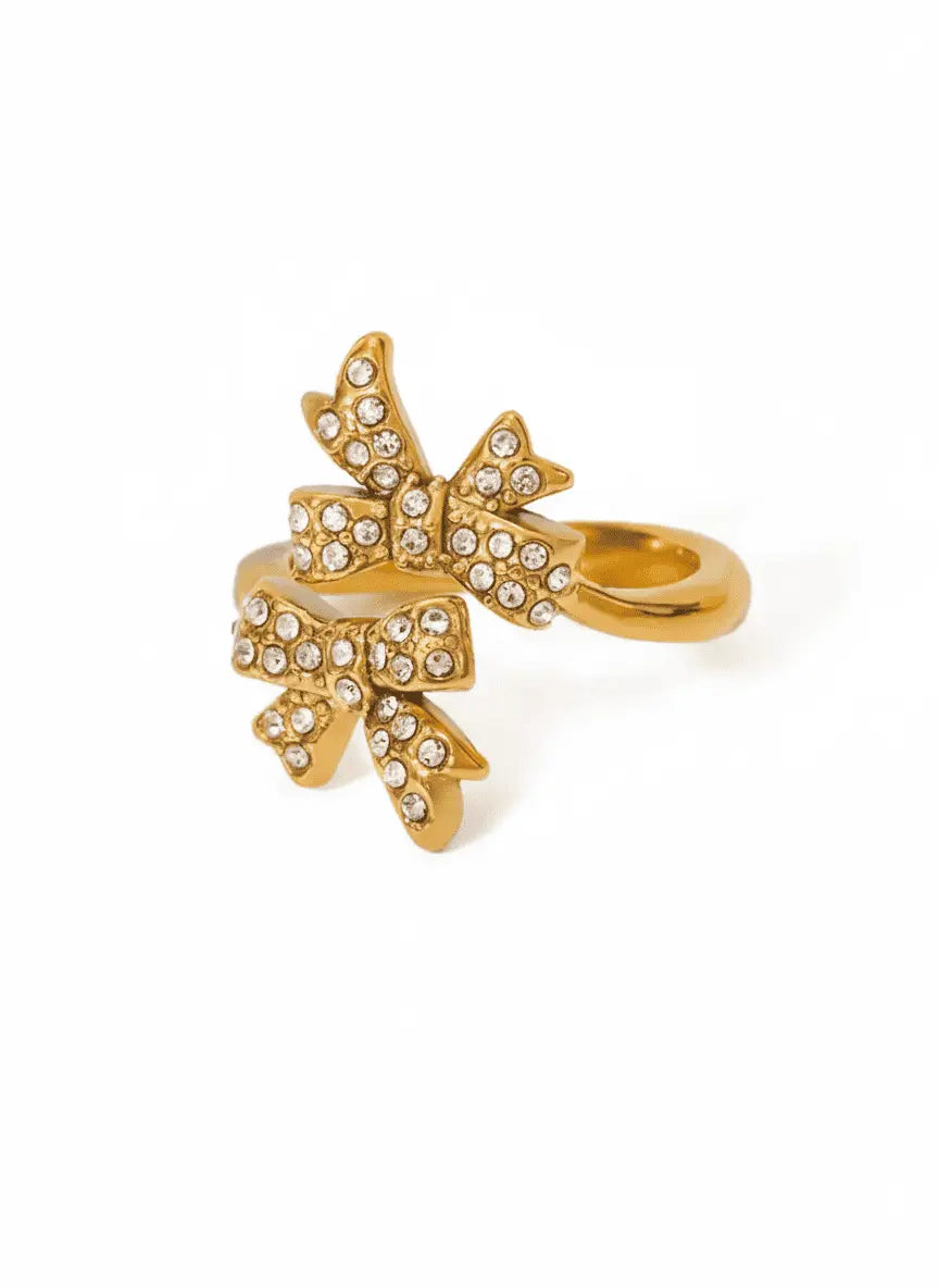• Detalhes: Anel ajustável com design volumoso de laço, cravejado com zircônias.